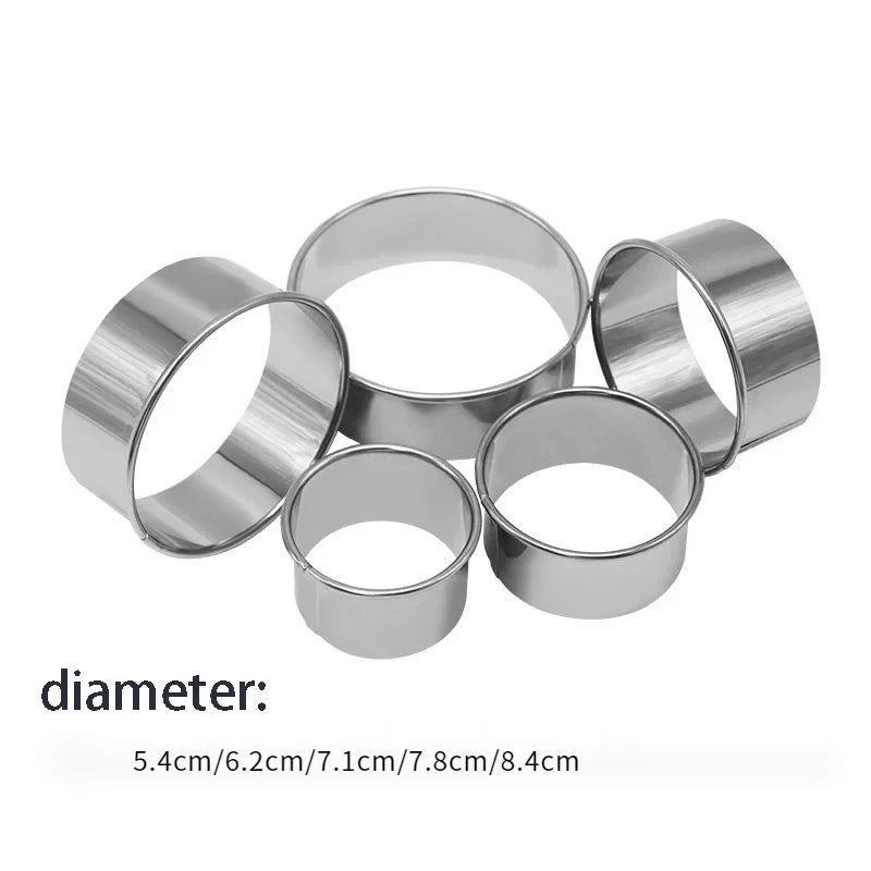 - Ensemble de 5 cercles de pâtisserie polyvalents, indispensables pour structurer vos créations culinaires.